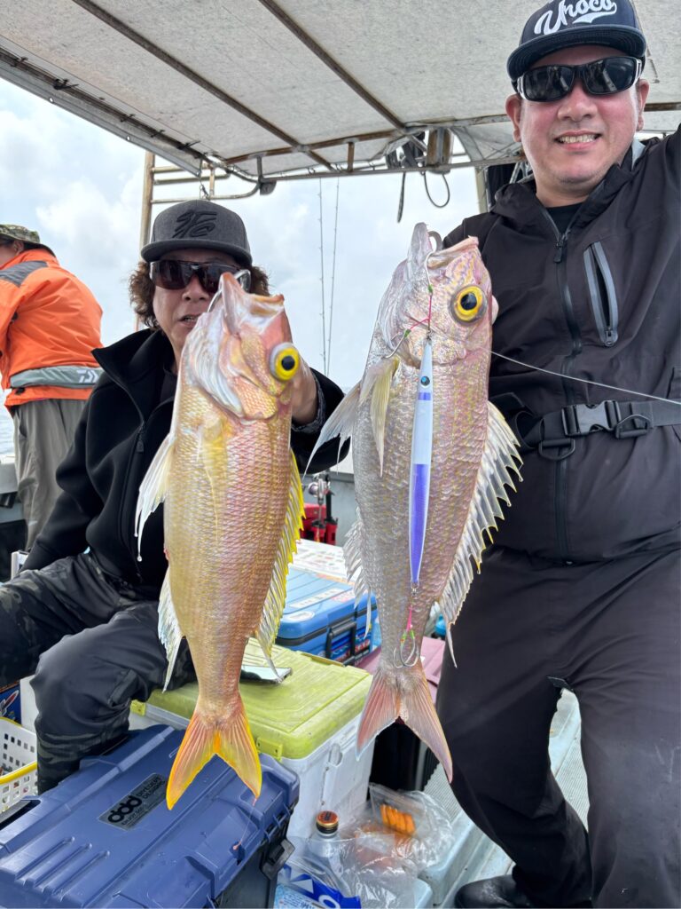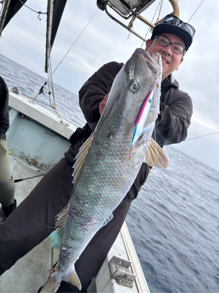 2026/3月 ジギング 2026.04.06 鯨もまだまだ子育て中、エサ釣りでは食い渋り中! ジギングはどうなの?序盤オーマチがダブル! その後はミーバイが単発! 後半は少し深い所へ… キンミーマチが船中4ヒット! 船中2〜3キロのカンパチが5〜6匹にサザナミダイなども揚がっていました! 毎度の乗船、ありがとうございます!